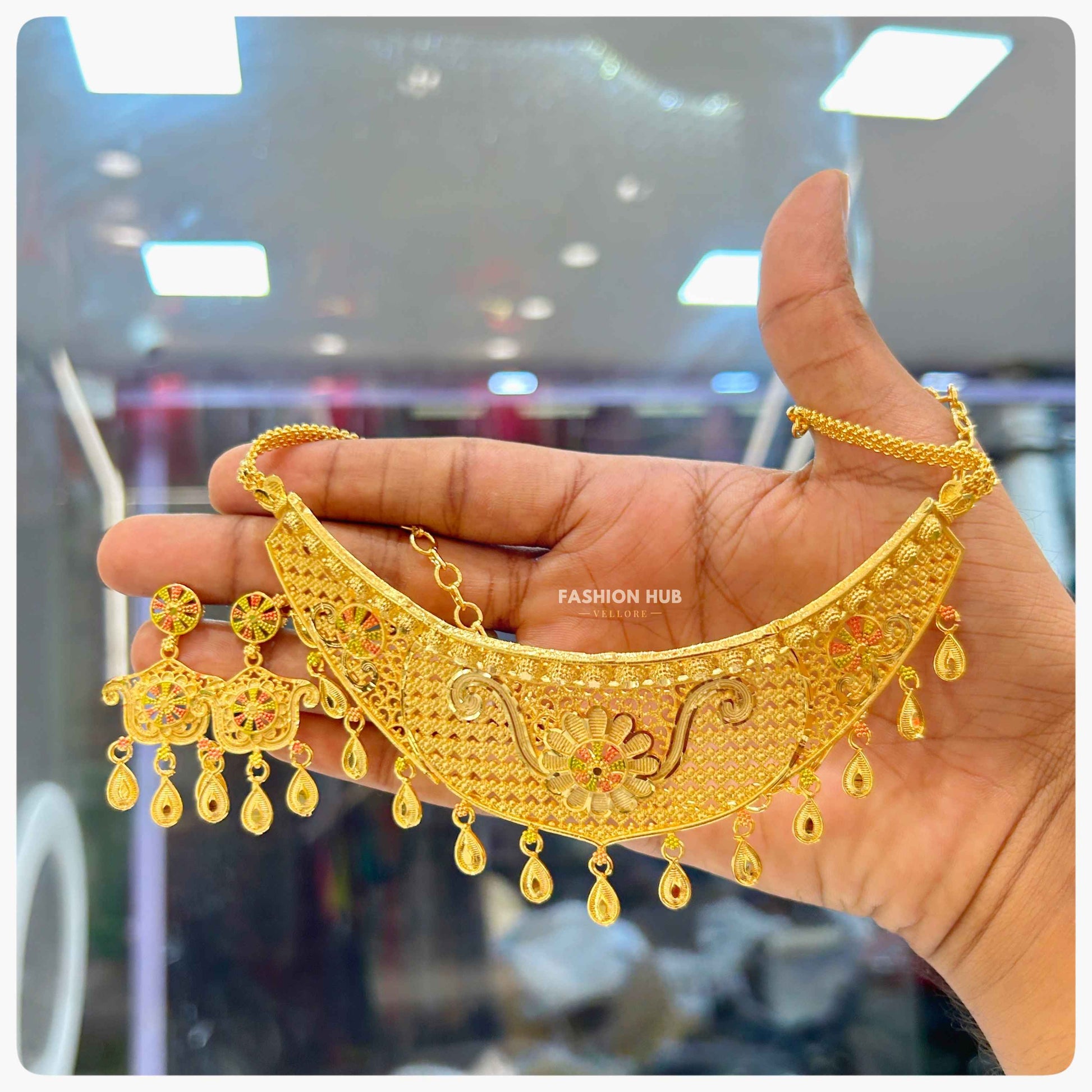 Gold, Design, women’s, Traditional, Indian, Haar, Necklace, Chockers, Earrings